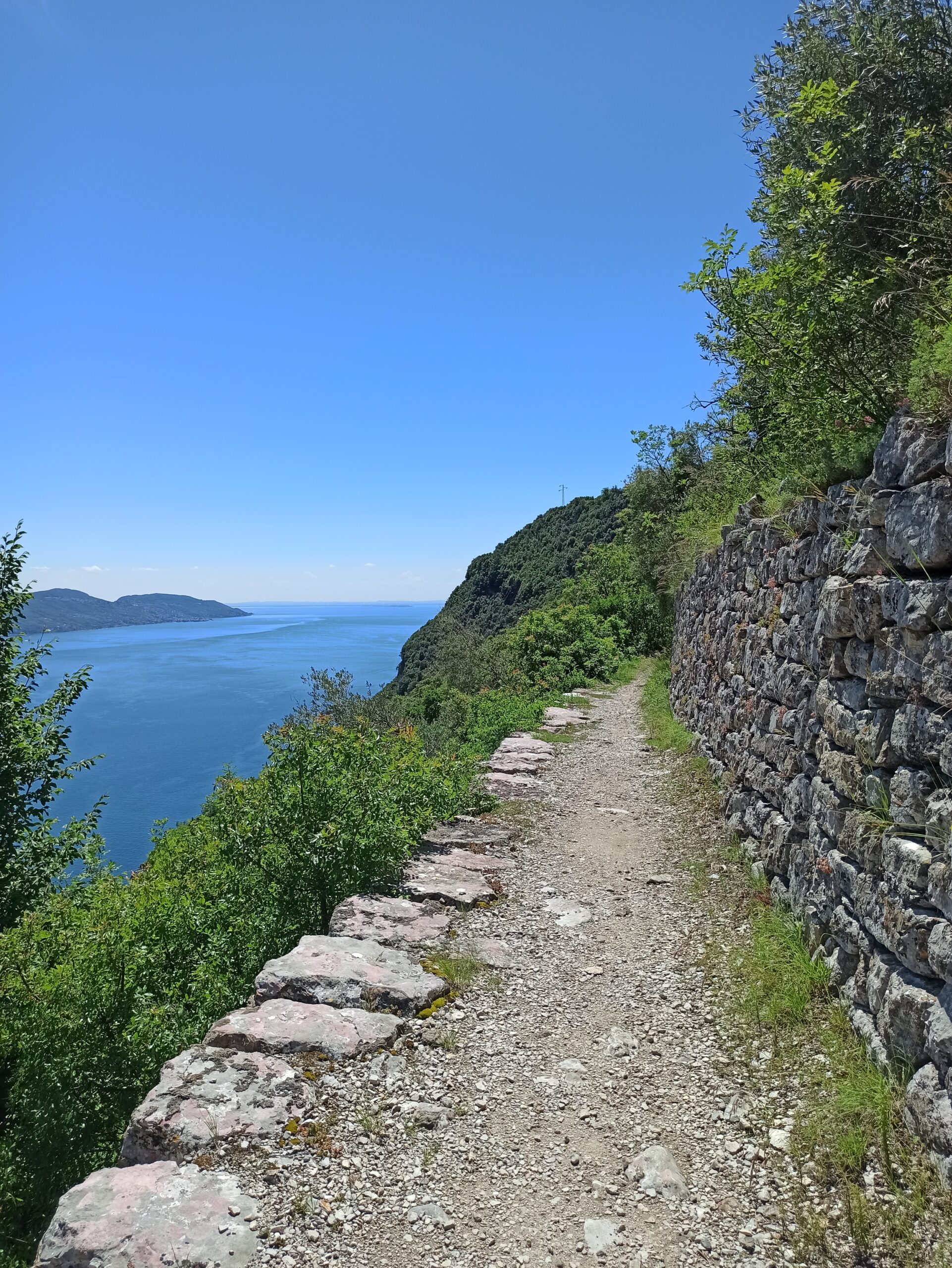 Con un bellissimo e panoramico percorso ad anello che parte da Muslone raggiungiamo l’abitato di Piovere per l’antica strada di collegamento con Gargnano; qui con una breve deviazione visitiamo gli splendidi salti d’acqua della cascata del Vione. Torniamo seguendo le indicazioni della Bassa Via del Garda, che con un continuo e leggero saliscendi tra muri a secco e uliveti ci offre ancora bellissime vedute fino al punto di partenza.